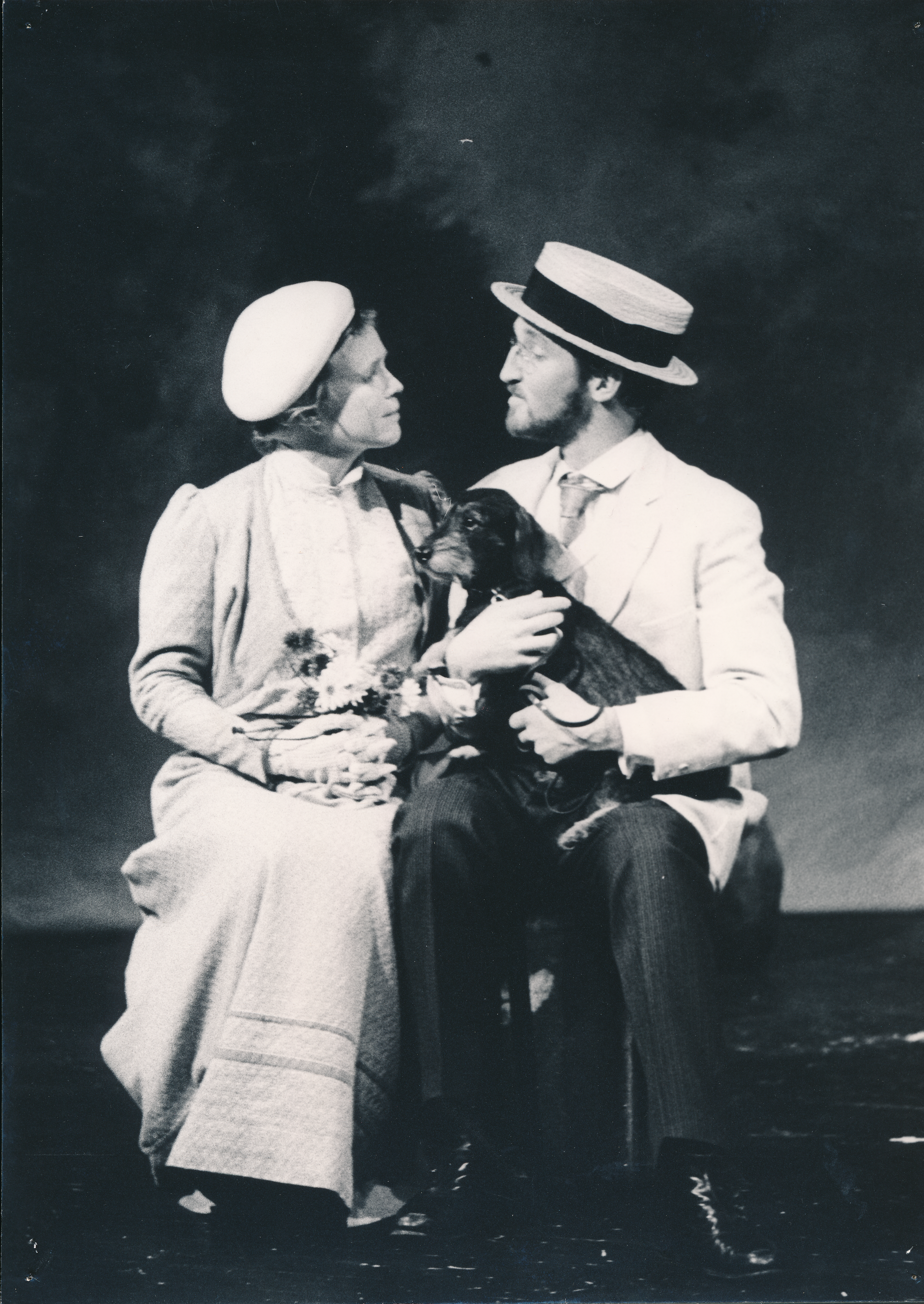 Fotografi fra Statens teaterskoles elevvisning Kvinna med hunden(1980)
