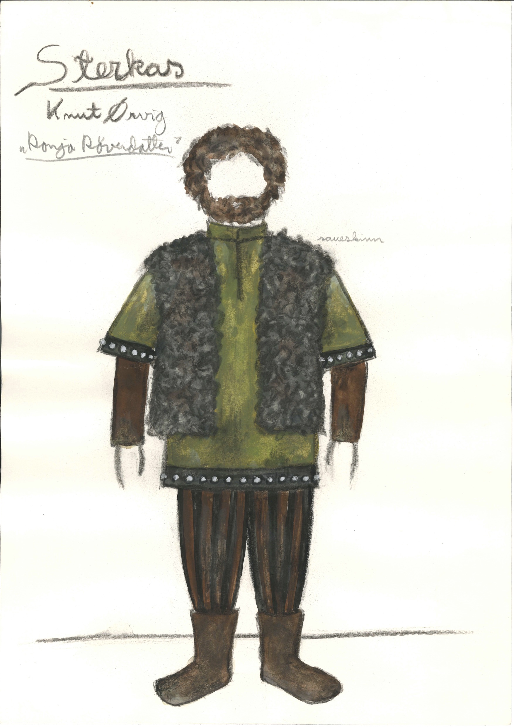 The costume in the drawing was used by the actor Knut Ørvig in the role of Sterkas during the first tour.